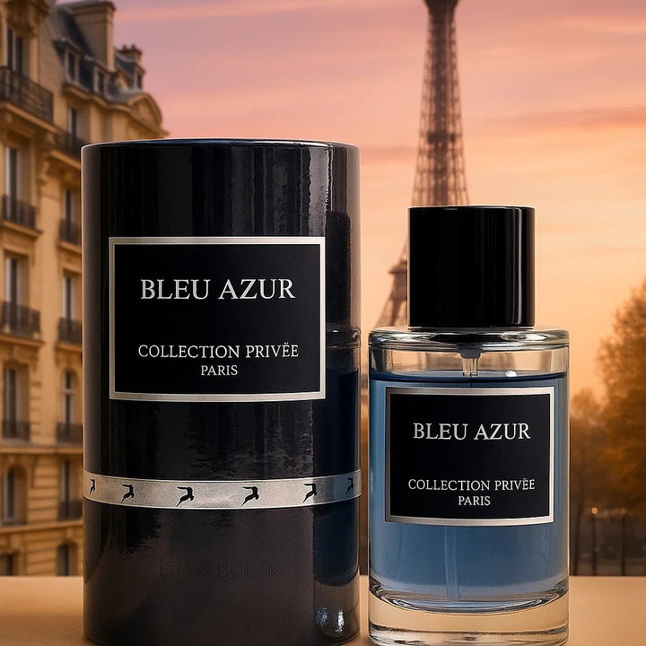 Parfum Collection privée Paris, 50 ml, des parfums unique et rare. Un bleu prononcé afin de souligner la profondeur de ce parfum pour Homme